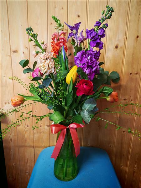 A beautiful spring selection in a cute vase